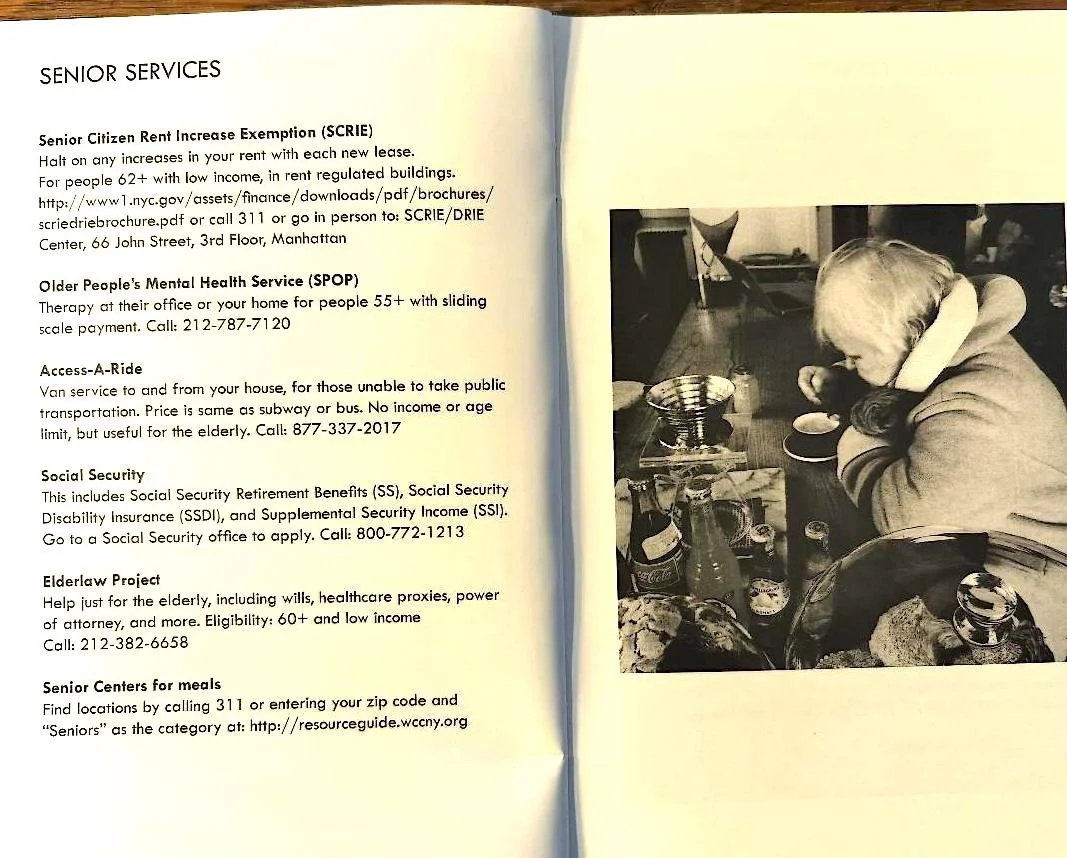 “Food, Money, Shelter: NYC Resources”, booklet, 2016 & 2017