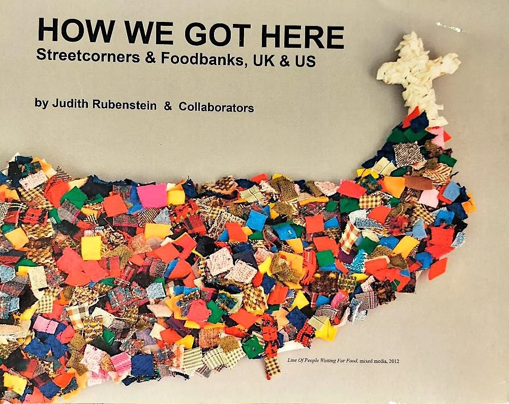 With funding from The Puffin Foundation, my Design Consultant Meghan Keane and I composed a booklet, HOW WE GOT HERE: Streetcorners & Foodbanks, UK & US. It is, essentially, a coffee table book dedicated to those with no coffee table.